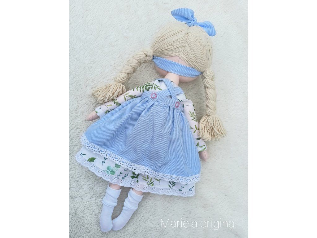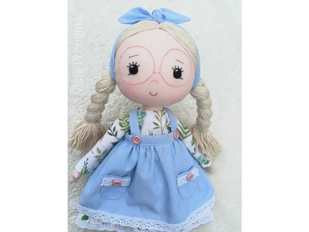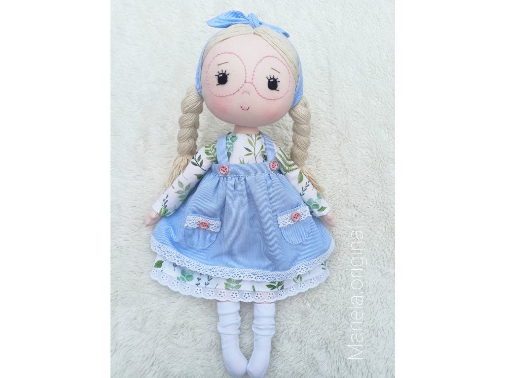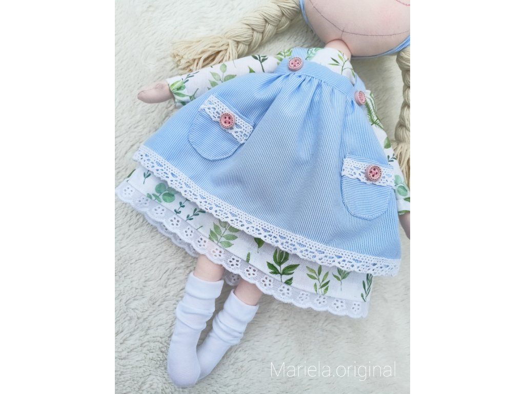 Bavlnená bábika s ručne vyšívanou tváričkou v romantickom štýle.