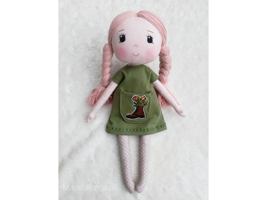 Bavlnená bábika s ručne vyšívanou tváričkou.