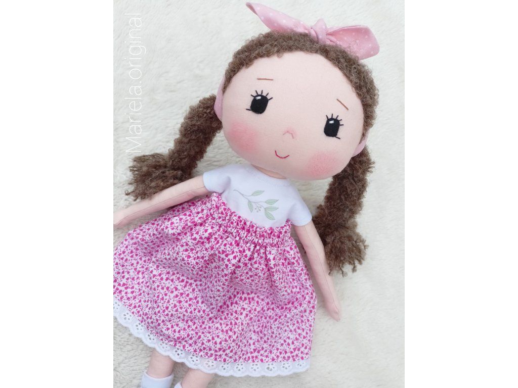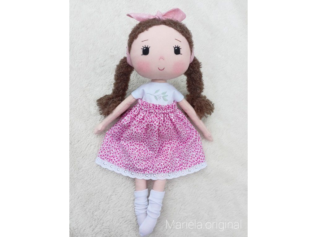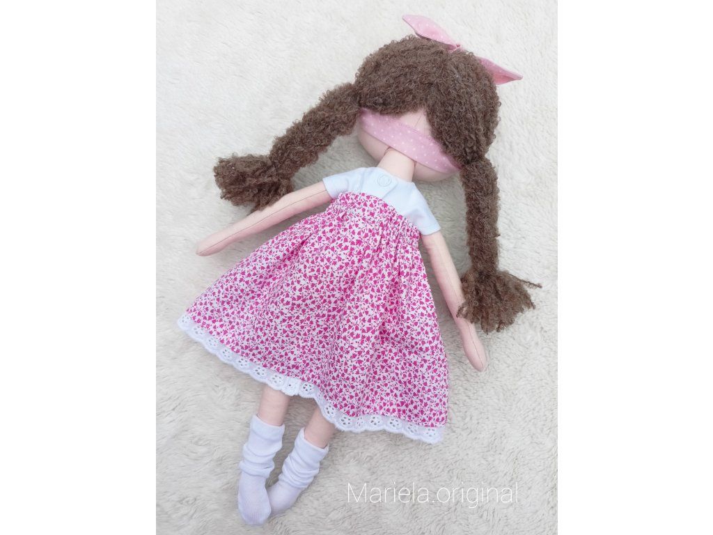 Bavlnená bábika s ručne vyšívanou tváričkou v romantickom štýle.